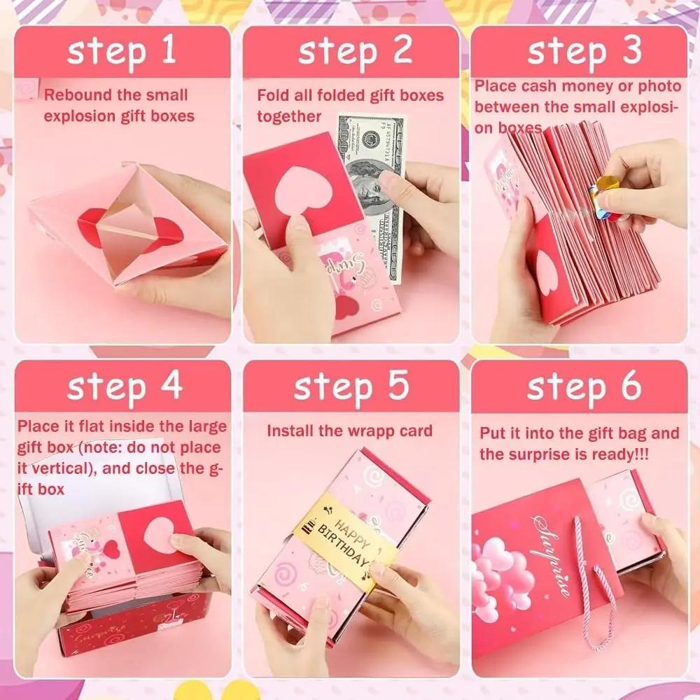 Stellen Sie sich vor: Eine schlichte Box öffnet sich und schon fliegt eine bunte 3D-Explosion aus Konfetti, Luftballons und Überraschungen heraus – ideal für Weihnachten, Geburtstage oder den Valentinstag. Gefüllt mit ganz persönlichen Schätzen wie Schmuck oder Gutscheinen.